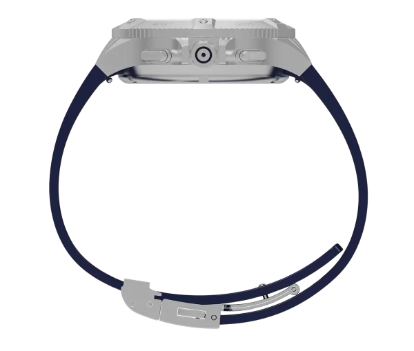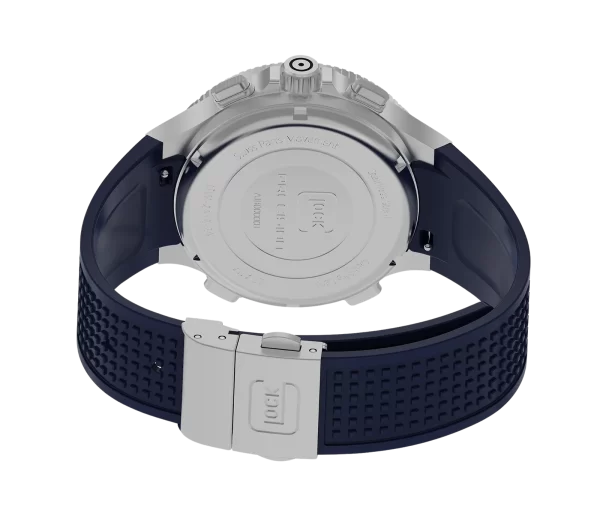 This watch represents modern elegance. Its sandblasted stainless steel case is paired with a vibrant blue silicone strap featuring GLOCK’s RTF texture. The combination of an analog and digital time display, complemented by Swiss Super-LumiNova® hands and indices, ensures a precise and quick check of the time. With a chronograph function and a 10 ATM water-resistance rating, it blends reliability with style.