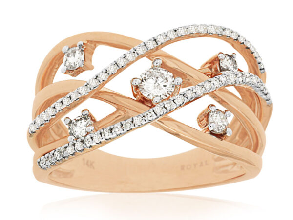 14K Rose Gold Free Form Ring with .50cts of Diamonds