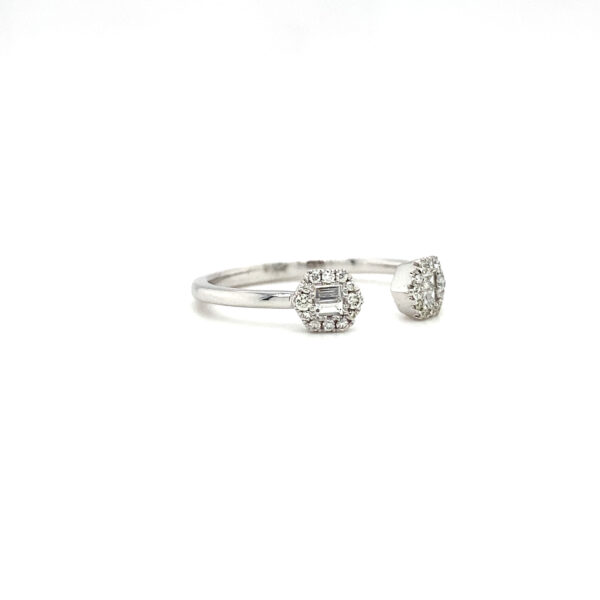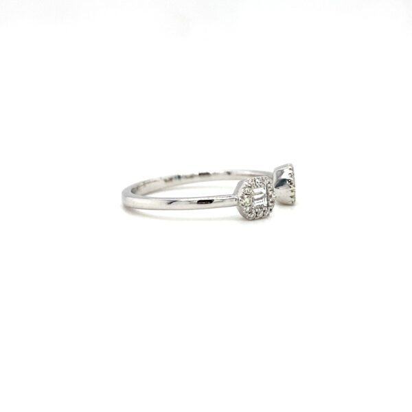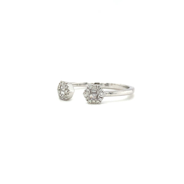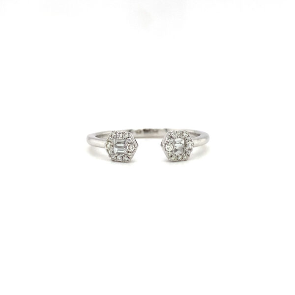 14K White Gold Free Form Ring with .09cts of Baguette Diamonds and .10cts of Round Diamonds